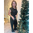 FEESTELIJKE STRETCHY FLOWY JUMPSUIT .OOK GESCHIKT VOOR DE LANGE BENEN. CHARLOTTE DRAAGT L. ZE IS 1.72 EN DE BROEK IS HAAR TE LANG MET PUMPS.