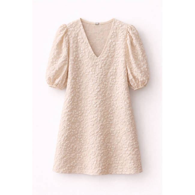 S/M RECHT A-KIJN JURKJE MET 3D PRINT IN IVOOR / BEIGE. WE PASSEN SNEL VOOR JE D...