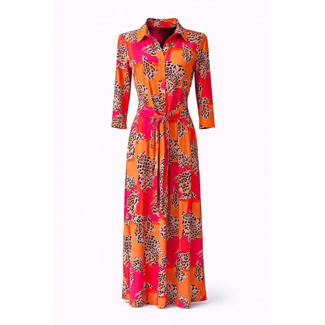 Beoordeel ANGELLE MILAN JURK MIDI 24121157 PANTER ROZE/ORANJE