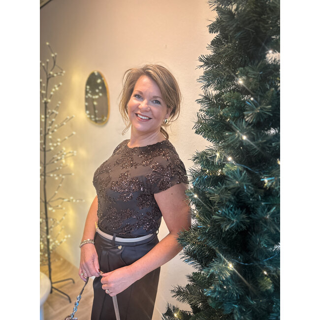 LUXE FEESTELIJKE CHOCO SHIRT MET SEQUINS. CHARLOTTE DRAAGT DE L.