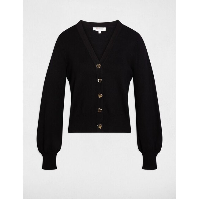 MORGAN DE TOI : ZWART VESTJE MET ZILVEREN HARTJES KNOPEN. 78% VISCOSE 22% POLYAM...